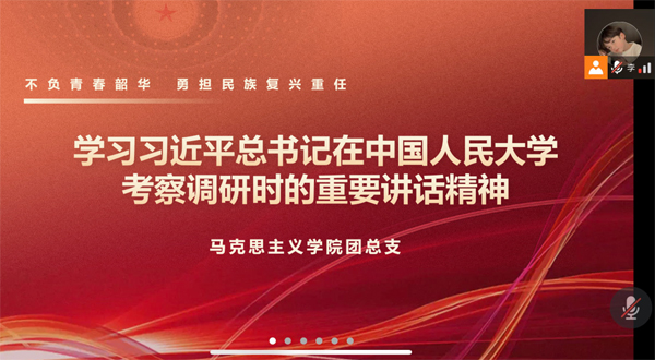 4月26日,EMC易倍体育团总支、研究生会、各年级团支部采用网络会议形式,学习热议总书记重要讲话精神。