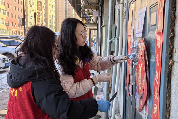 在社区工作人员的带领下,志愿者们带着工具,分别前往富康花园小区、富祥小区,清除楼宇门、墙体、管道上的小广告,以及张贴栏遗留的污渍,清理了卫生死角、绿化带白色垃圾和烟花爆竹残屑。经过大家的共同努力,小区环境卫生有了较大改善,为居民营造了干净整洁的生活环境。