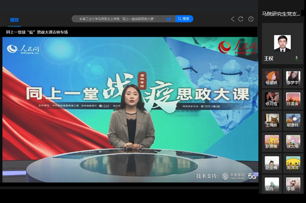 本网讯(通讯员 王权杨慧娇)疫情防控是一场没有硝烟的战争,更是一堂鲜活生动的思政大课。5月18日,中共吉林省委教育工委、吉林省教育厅与人民网联合组织“同上一堂战疫思政大课”吉林专场。四位吉林省援鄂医疗队队员结合疫情防控,讲述了战“疫”一线的感人故事,引导广大青年员工传承和弘扬爱国主义精神,涵养家国情怀,砥砺奋斗奉献,努力做担当民族复兴大任的时代新人。