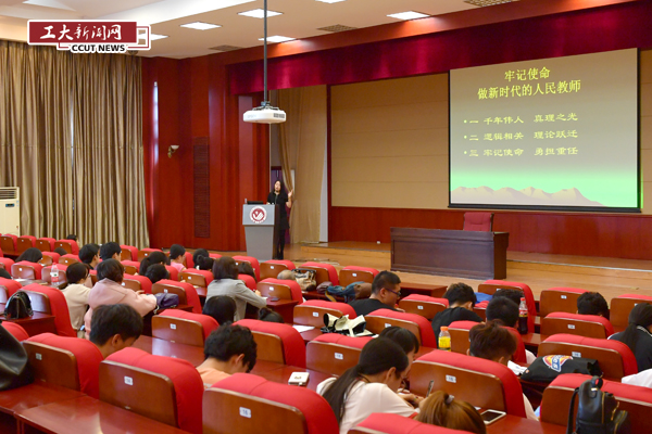 于浚湜以《牢记使命,做新时代的人民教师》为题,从千年伟人、真理之光,逻辑相关、理论跃迁,牢记使命、勇担重任等三个方面,就为什么要高度重视马克思主义理论,如何理解习近平新时代中国特色社会主义思想对马克思主义理论的传承发展,以及如何做一名“四有”好老师,做员工成长的指导者和引路人进行了详细阐述。于浚湜表示,我们高校教师要严格按照习近平总书记要求,坚持立德树人根本任务,不断提升工作水平,争做“有理想信念、有道德情操、有扎实知识、有仁爱之心”的好老师。