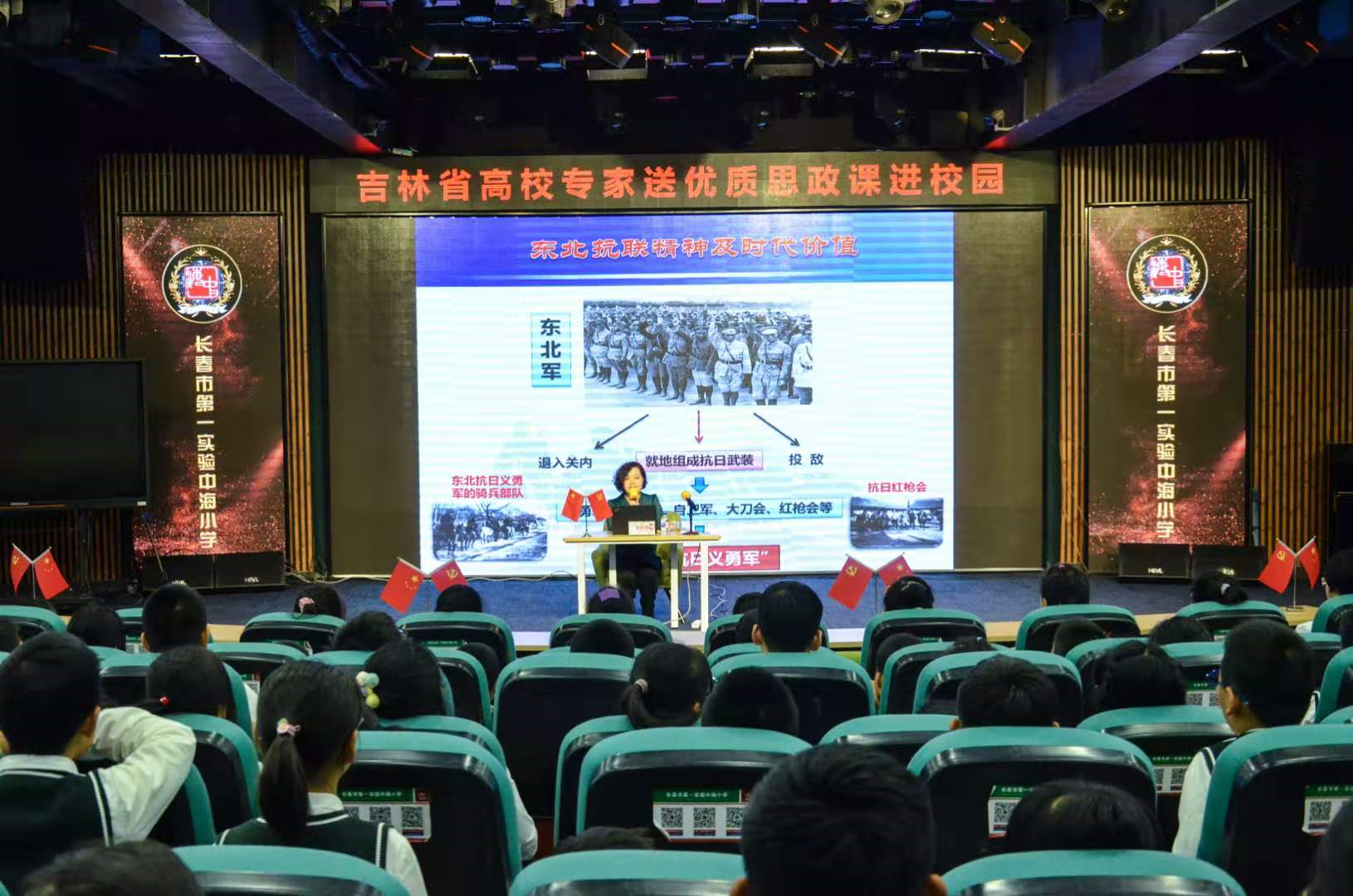 12月2日下午,中国近现代史纲要教研室李林琳老师走进长春市第一实验中海小学,为300余名师生讲授了一堂以《东北抗联精神及时代价值》为题的思政课。在40分钟的课程里,她通过PPT演示、讲述红色故事、现场问答互动等形式,完成了这堂特殊的思政课,受到师生广泛好评。
