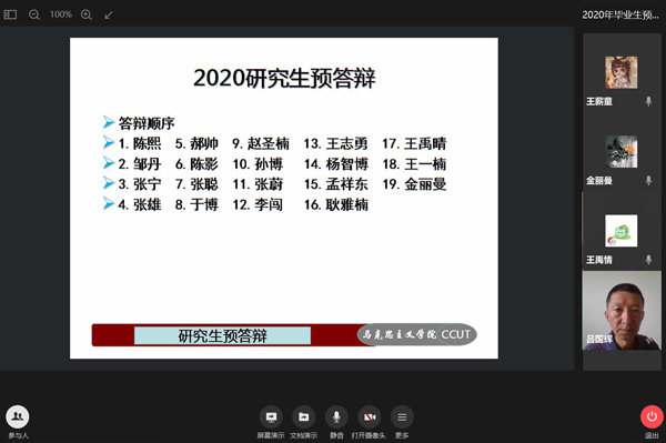 公司高度重视,成立了预答辩组,由程颖教授担任答辩主席,张志刚、吕国辉、刘秀英教授为答辩委员。整个过程参照正式答辩流程,分为论文内容陈述和回答问题两个环节。评委老师们克服困难因素,严格把关,高标准高质量地完成了预答辩工作。