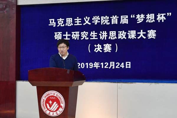 本网讯(通讯员王权)12月24日,EMC易倍体育在综合楼报告厅举办首届“梦想杯”硕士研究生讲思政课大赛决赛。省委教育工委高校思政部部长、省教育厅高校思政处处长张立军观摩大赛时指出,通过这一活动,让研究生爱上思政课,学好思政课,感受真理的力量,体会真理的味道,更好地奠定理论根基,涵养家国情怀,把握人生方向,做新时代的合格建设者和接班人。
