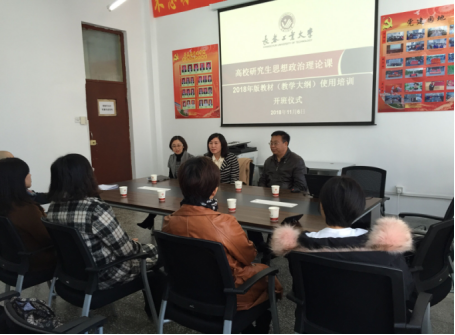11月6日,高校研究生思想政治理论课2018年版教材(教学大纲)使用培训分会场在公司开班。研究生院经理林洁琼、马克思主义公司党总支书记朱兴国、副经理王晓光及参加培训的教师参加了开班仪式,由王经理主持开班仪式。