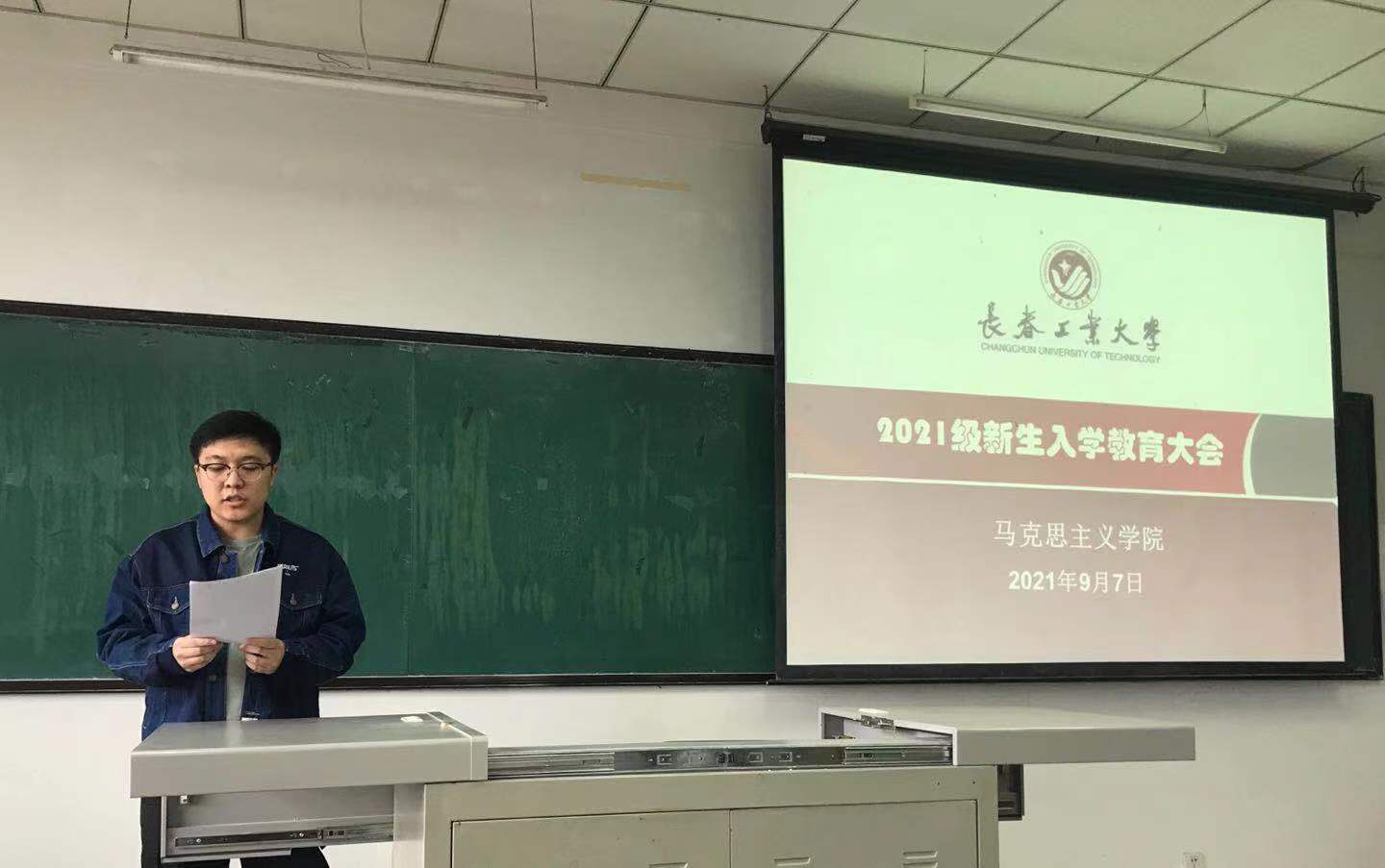 2021级研究生张豪轩代表新生发言,表达了对未来的研究生生活的期许和展望,并代表全体同学做出“刻苦学习,不负重托;努力探索,再创佳绩”的倡议。