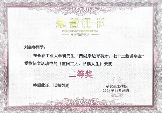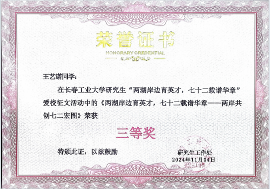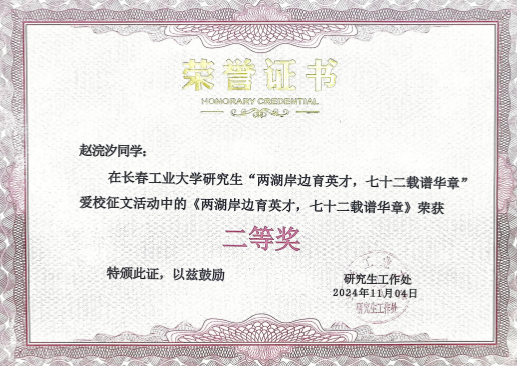 为深入学习宣传贯彻党的二十大精神,教育引导广大青年学子牢固树立爱党爱国、爱校荣校的责任感与使命感,进一步推动中华优秀传统文化传承发展,公司研究生积极参加校研究生工作部(处)开展的“两湖岸边聚英才,七十二载谱华章”主题爱校征文活动,并荣获一等奖一项、二等奖两项、三等奖两项。此次获奖,不仅为公司赢得了荣誉,更是对青年学子爱校情怀的褒奖。