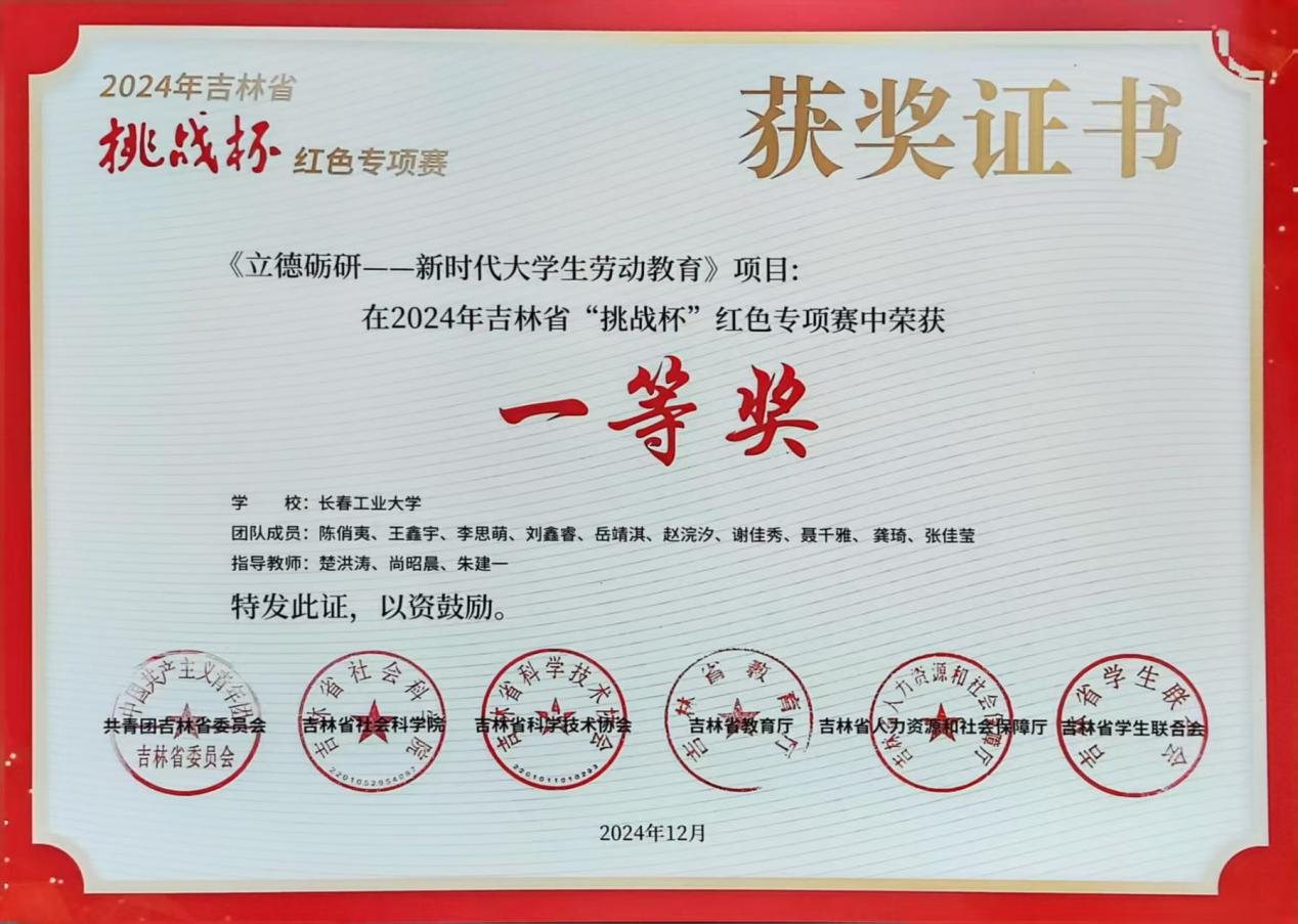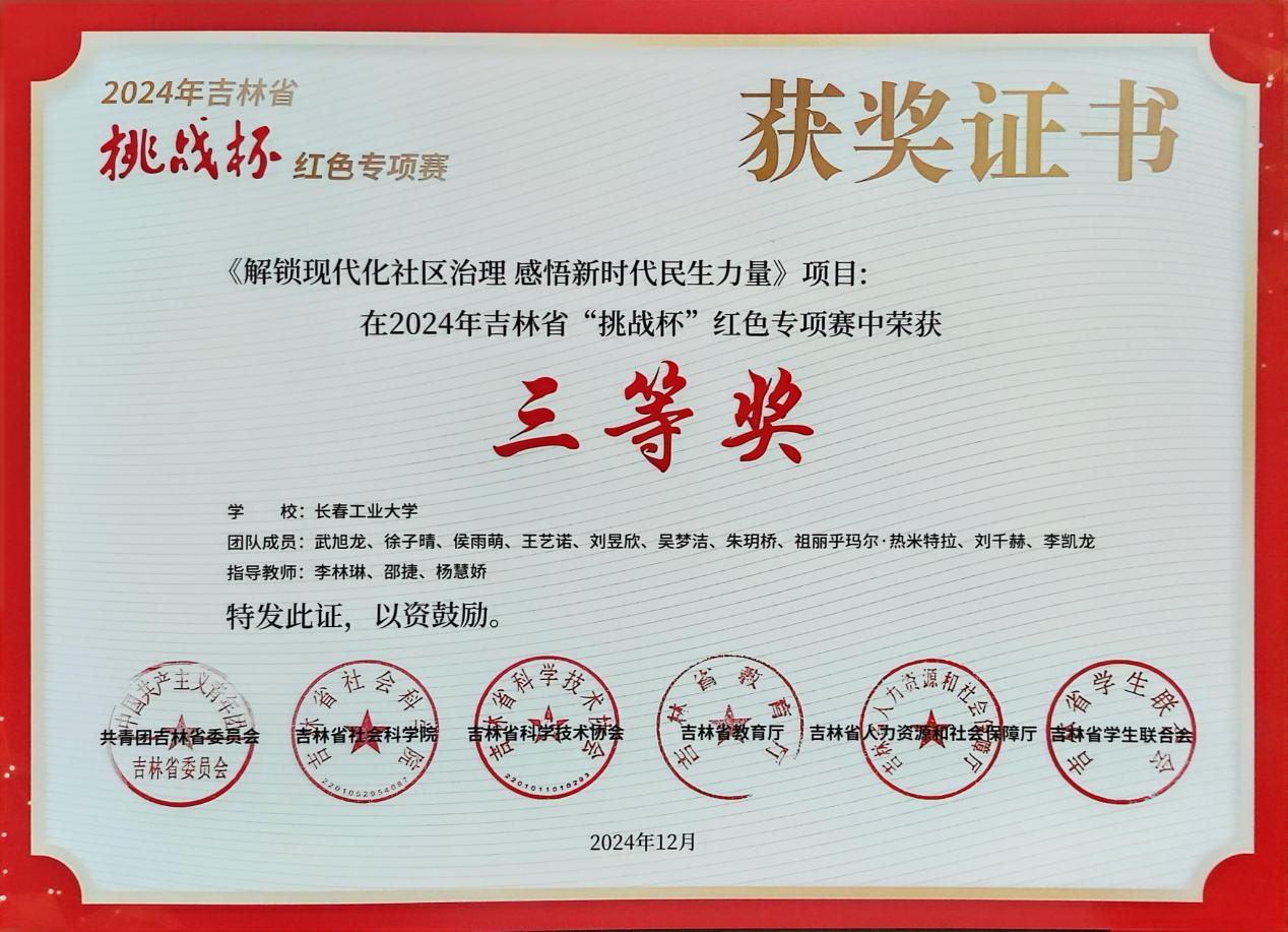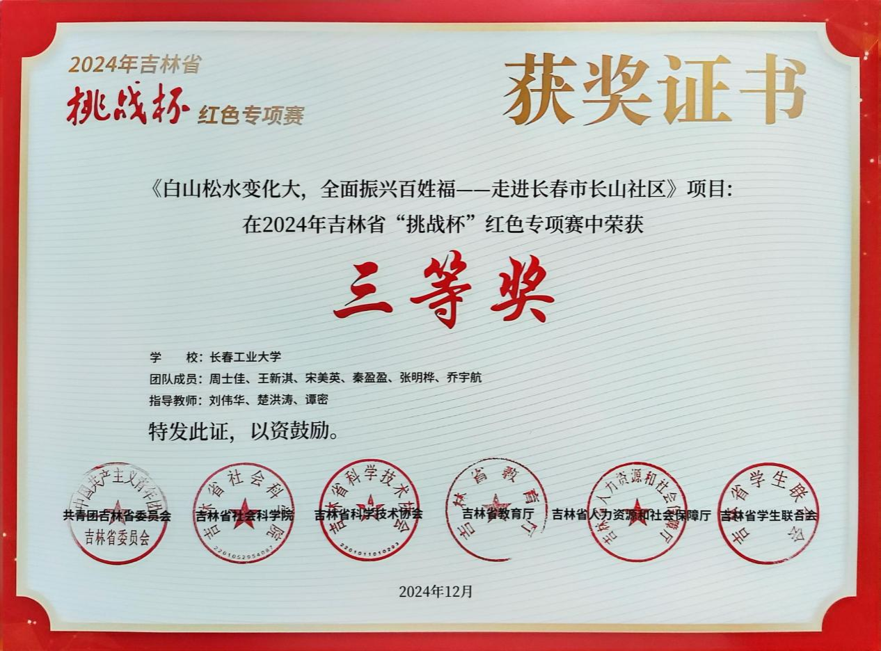 近日,由共青团吉林省委员会、吉林省社会科公司、吉林省科学技术协会、吉林省教育厅、吉林省人力资源和社会保障厅、吉林省员工联合会联合开展的2024年吉林省“挑战杯“红色专项赛评选结果公布,EMC易倍体育获得一等奖1项、三等奖2项。